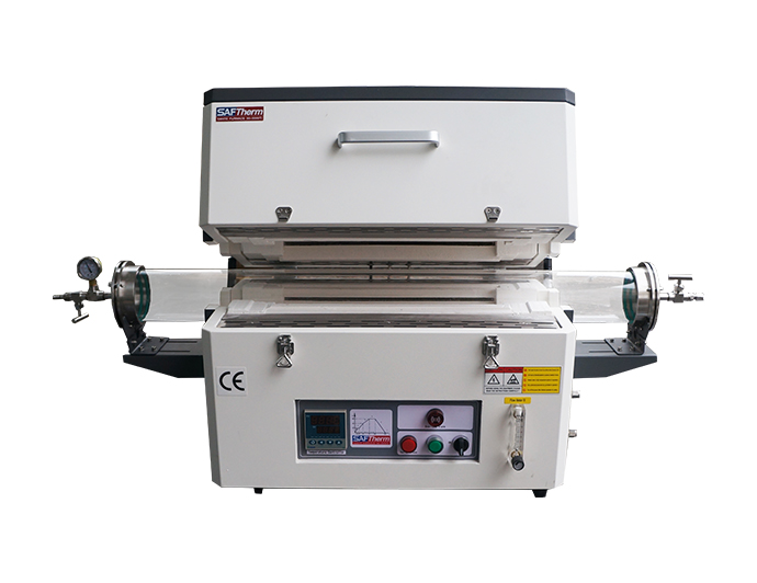 炉管两端装有不锈钢金属法兰,配套高温 PTFE 垫圈,可在真空下进行工作, 真空度≤5pa(旋片式真空泵) |